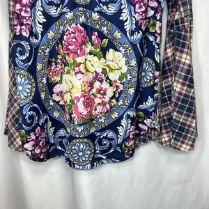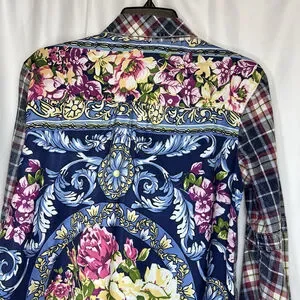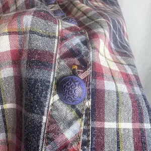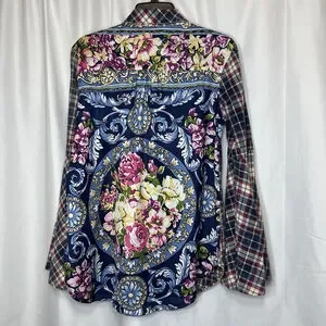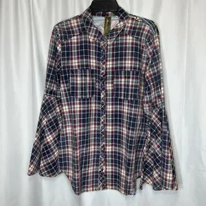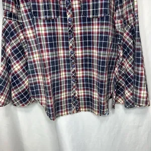 ARATTA Silent Journey Womens Plaid Flannel Button Down Shirt M Boho Western Bell