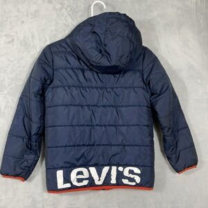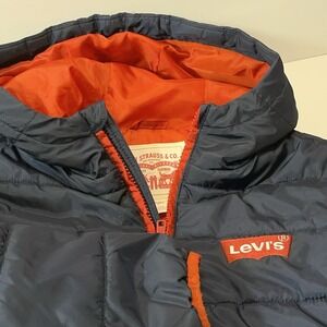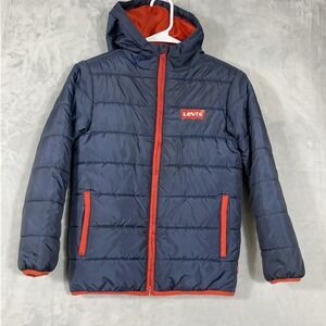 Vtg Levi's Boys Puffer Jacket Blue Water Resistant Hooded M Coat 10-12 Years