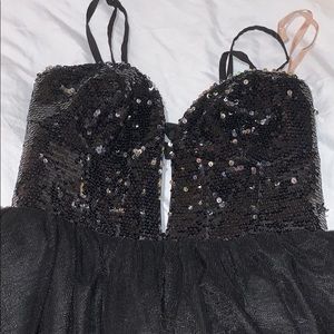Skater skirt tulle black shimmery sparkly dress many cut outs on the back deep v in the front worn once