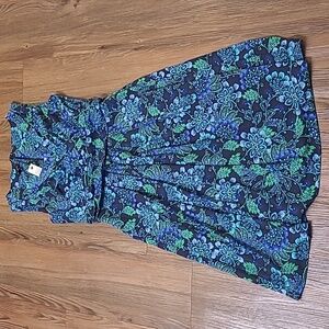 Chic dress with a blue and green floral design. Ideal for versatile wear.