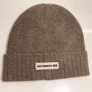 Anya Hindmarch Uniqlo collab beige 100% cashmere knitted beanie hat tuque
