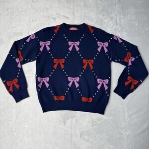 THML Women’s M ‘Ginny’ Knit Bow Pullover Sweater Navy Crew Neck Long Sleeve EUC