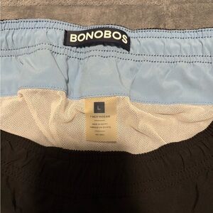 Sleek Bonobos swim shorts in black with white details. Perfect for beach or pool days.