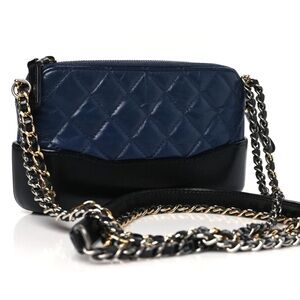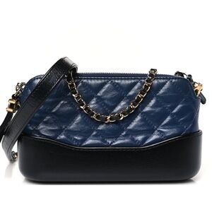 Chanel Quilted Gabrielle Clutch with Chain, Navy/Black - Great Condition