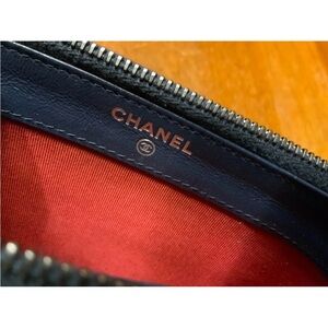 Chanel quilted crossbody, Chanel navy black bag, Chanel small chain bag, Chanel zip crossbody, Chanel CC logo bag, Chanel red interior bag, Chanel navy black quilted crossbody bag, authentic style Chanel small chain bag, Chanel quilted zip crossbody red lining, Chanel mixed metal chain shoulder bag, Chanel small navy crossbody purse