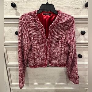 • y2k cropped jacket • red tweed jacket • bouclé blazer • rampage jacket • open front blazer • textured jacket • holiday jacket • statement jacket