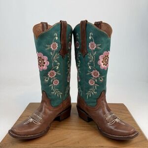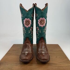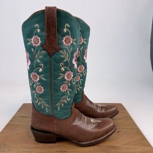 New Womens Tanner Mark Hand Tooled Floral Blunt Toe Western Cowboy Boots Sz 5 M