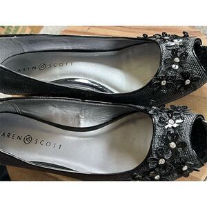 Karen Scott Women's Black Floral Peep Toe Wedges Size 8.5