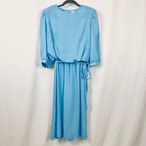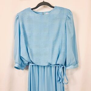 Vintage 70s Lady Carol 12 Blue Lightweight Sheer Blouson Midi Dress 3/4 Sleeve