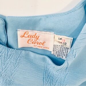 The Vintage 70s Lady Carol 12 Blue Lightweight Sheer Blouson Midi Dress with 3/4 sleeves is a stylish and elegant piece of women's vintage clothing. This dress, perfect for evening occasions, was crafted in the 1970s, featuring a flattering silhouette and a beautiful blue color. The sheer material and blouson style add a touch of sophistication to this timeless and feminine outfit, making it a standout choice for those who appreciate vintage fashion.
