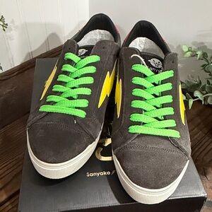 NWT Sanyako Thunderbolt Charcoal-Yellow women's sneakers.