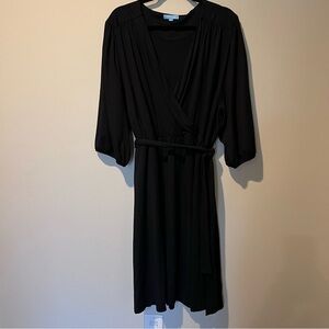 Draper James RSVP Plus Size Womens Midi Knit Wrap Dress Black Belted 3XL NWT.