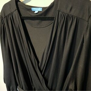 Draper James RSVP Plus Size Womens Midi Knit Wrap Dress Black Belted 3XL NWT