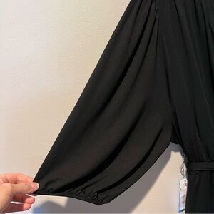 Brand new with tags attached. This dress is great for any season and is so soft and flowy. It has a wrap chest with a hook and eye to close it if you prefer more modestly. The wrap feature at the chest can accommodate larger chest sizes due to the stretch- this dress has tons of stretch! The dress has an empire waist (high waist) and a belt around the waist that has loops to attach it to the dress. It has pockets in the skirt and the skirt is a little longer. The sleeves are about elbow length and have elastic around the bottom. This dress is a heavy weight fabric but is not hot, the weight just helps it hang perfectly. Womens size 3XL and it has tons of stretch. MSRP $68.