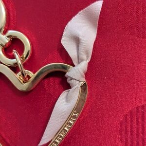 🆕 Burberry Gold Heart Bag Charm Keyring with Pink Ribbon New In Box