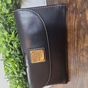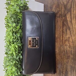 Elegant and timeless, this Dooney & Bourke black leather wallet is perfect for any occasion. Its sleek design and classic color make it a versatile accessory for your wardrobe.