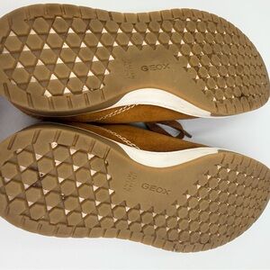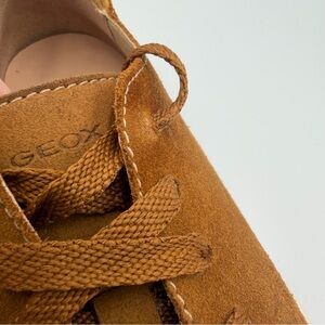 Stylish and comfortable Geox Respira suede lace-up sneakers in a beautiful brown/cognac color. These shoes feature Geox’s signature breathable sole technology for all-day comfort and wearability. Made in Italy with quality craftsmanship, they’re perfect for casual everyday wear, school, or travel.