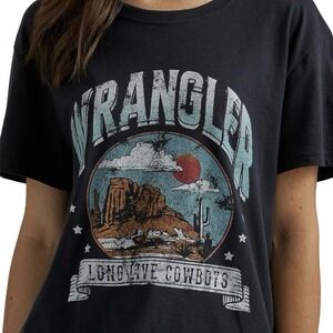 NWT Wrangler Retro Long Live Cowboys Women's Large Boyfriend Fit Jet Black Tee