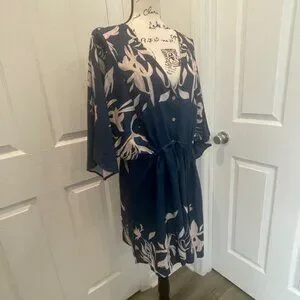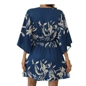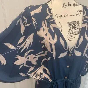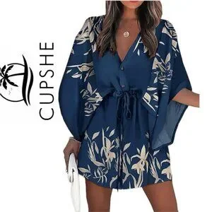 Embrace the essence of effortless summer style with the CUPSHE Oversized Dress in size M. This stunning piece features a captivating navy blue base accented by elegant tan floral patterns, perfectly capturing the beachy chic aesthetic. Designed for comfort and flair, the dress offers flared sleeves that add a touch of bohemian elegance to any outfit. Its loose fit is not only stylish but also allows for easy movement, making it ideal for those warm, breezy days by the beach or casual summer gatherings. The dress is crafted from lightweight, breathable material, ensuring comfort throughout the day. It includes a belt tie at the waist to customize the fit according to your preference. Pair this versatile piece with your favorite sandals and accessories to create a look that's uniquely yours. Perfect for beach outings, summer parties, or just a relaxed day out, this CUPSHE dress is a must-have addition to your summer wardrobe.