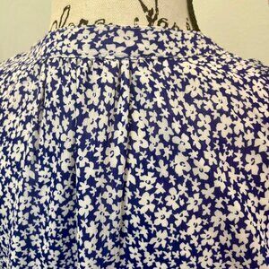 Embrace the charming aesthetics of cottagecore and preppy chic with the J.CREW Blouse. This exquisite short sleeve blouse is expertly crafted for a timeless style that effortlessly elevates any wardrobe. Designed in a captivating blue floral pattern, it delivers a fresh and airy look suitable for both casual and semi-formal settings. The ruffle detailing adds an extra touch of femininity and elegance. Made from high-quality materials, this blouse ensures comfort and durability. Available in size XS, it offers a flattering fit. Perfect for pairing with your favorite jeans or a chic skirt, this blouse is a versatile wardrobe staple that exudes sophistication and grace. Make it yours and revel in the sophisticated whimsy it brings to your attire.