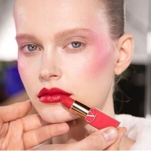 Valentino's Rosso Satin Lipstick delivers vibrant color. Enjoy a bold red hue with a smooth, lasting finish. Ideal for a standout look.