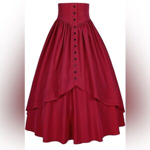 This floor length Victorian style skirt features a stylish faux button down front, perfect for holiday or cosplay. Elastic wait, size small. EUC - worn once Christmas 2024 and hung in closet after.