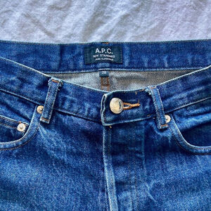 Authentic A.P.C. New Standard jeans in size 29. Features straight leg fit, raw denim indigo fabric, button fly, and five-pocket design. A.P.C. is known for its minimalist Parisian style and durable premium denim that develops unique fades over time.