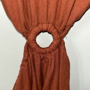 Altar’d Stage mini dress. Short sleeve. Scoop neck. Cutouts. Low back. 80% Rayon 20% Linen. Pumpkin spice burnt orange color. Perfect for fall. Pumpkin patch, wine tasting, fall leaves, photoshoot.