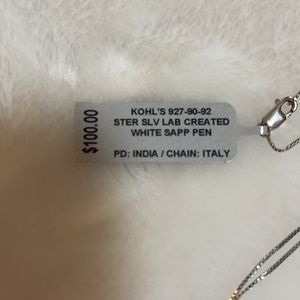 Gorgeous 18” Sterling Silver chain from Italy with a stunning Sterling Silver and Lab created White Sapphire pendant.
