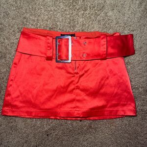 Size Medium Red Micro Mini Belted Skirt w/ Shorts