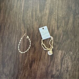 Stylish gold bracelet set with a shell charm. Ideal for enhancing any look.