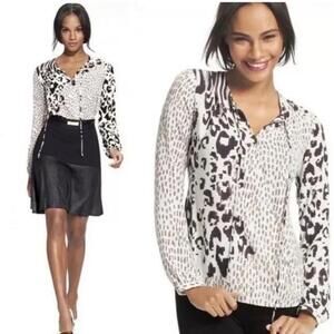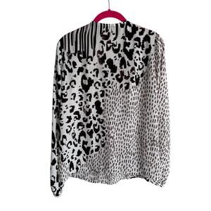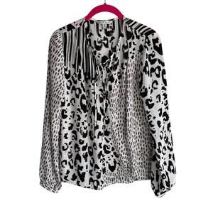 CAbi Black and White Animal Print Surplice Long Sleeve Ladies Blouse.