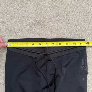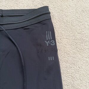 Y-3 running leggings size s. Drawstring waist and mesh details at calf. Y-3 and Yohji Yamamoto logo at left side. Very stretchy and soft. Waist length 24”. Full length 37”.