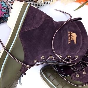 Sorel Purple Green Suede Boots Women's Sz 10