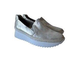 Paul Green Candice Metallic Silver Leather Platform Slip-On Sneakers Women Sz 9