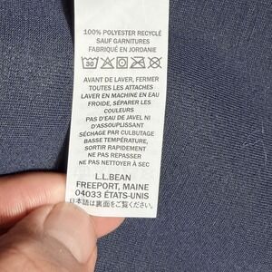 Stay cozy and stylish in this L.L.Bean women's hooded sherpa fleece jacket, item number 514666. This full-zip jacket features a plush cream sherpa exterior with a contrasting navy blue lining for extra warmth and comfort. It is a women's size Medium Petite and is crafted from soft, 100% recycled polyester. With its comfortable hood and convenient front pockets, this jacket is perfect for cool weather outings.