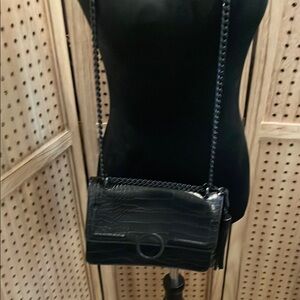 Black Croc-Embossed Shoulder Bag