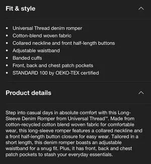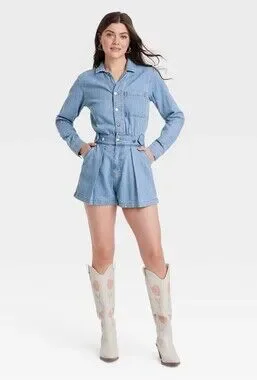 Women's Long Sleeve Denim Romper Size 16 Universal Thread™ Adjustable Waist