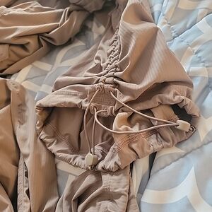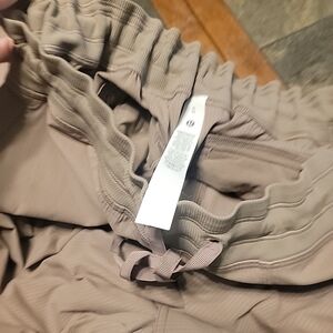The Lululemon Dance Studio Relaxed Fit Mid-Rise Cargo Pants in TAUPETASTIC size XL are perfect for women looking for comfortable and stylish activewear. These wide-leg 10" jogger pants feature a ribbed look pattern and are made from a nylon, spandex blend fabric for lightweight and stretchy comfort. The relaxed fit, adjustable waist, and drawstring ankle ensure a comfortable and secure fit for various activities like, joga, gym training, walking, and jogging. With features like media pockets, oversized cargo pockets, and an elastic waist, these pants are both practical and fashionable for everyday wear. Pull ties on edge allow you to pull up the sides for a different looks. Super cute and on-trend comfort.