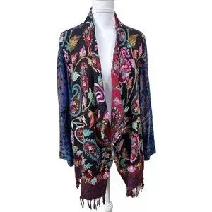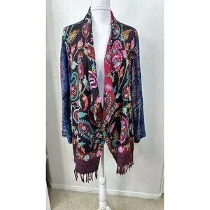 Soft Surroundings Sweater Boho Embroidered Open Fringe Kimono Cardigan SZ: Large