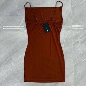Brand new with tags - Women’s Fashion Nova Let’s Run Away Cowl Neck Sleeveless Mini Dress. Has adjustable straps and one lining layer. Color: Cognac (brown). Size: M.