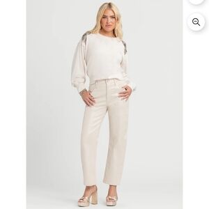 Elegant women's cream top featuring stylish silver accents on the shoulders. Perfect for a chic and modern look.