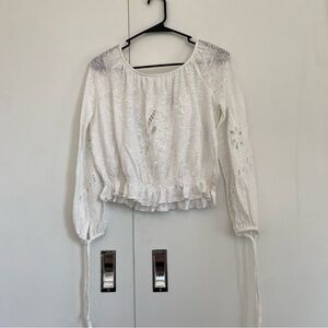 Free People White Embroidered Peasant Top Size XS