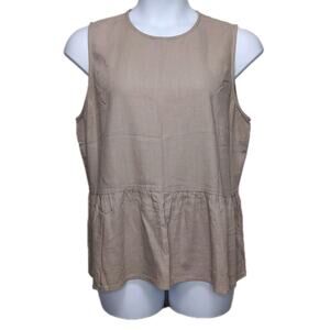 Jeanswest Linen Blend Peplum Tank Top Women's Size 16 Beige Sleeveless Pullover Blouse