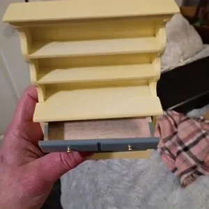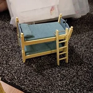 Vintage Doll House Bedroom Set with Blue and Cream Furniture