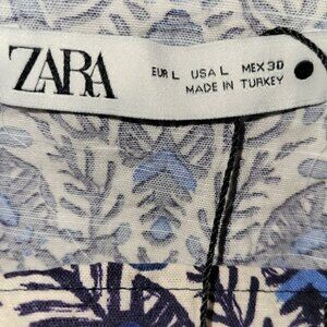 ZARA Sarong The Mina Wrap Skirt Bathing Suit Cover Blue White Women's Size L NWT