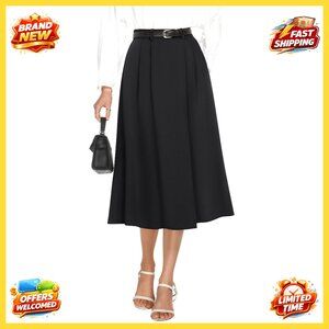 High Waisted Midi Skirt A-Line Pleated Elegant Business Casual Chic