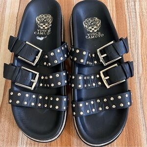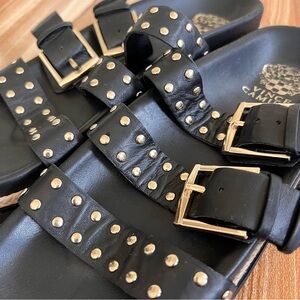 Leather black and gold studded platform Vince camuto slide sandal. The straps are adjustable