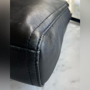 Good condition, some light wear on corners. Interior is clean, no marks on leather or lining.