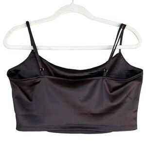 cropped top, draped top, satin look, going out top, y2k style, minimalist, brown top, adjustable straps
